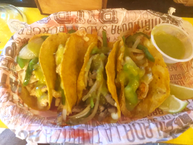 frijoles, alitas picositas, salsa verde, apio, zanahoria y blue cheese, con pollo.