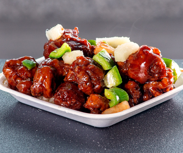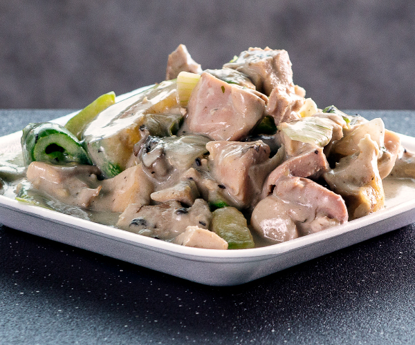 2 Guisos de pollo, 2 complementos, 1 pieza de pan y un rico elote.