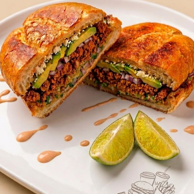 Pan frijol, CARNE MIXTA Y QUESO, lechuga, tomate, aguacate