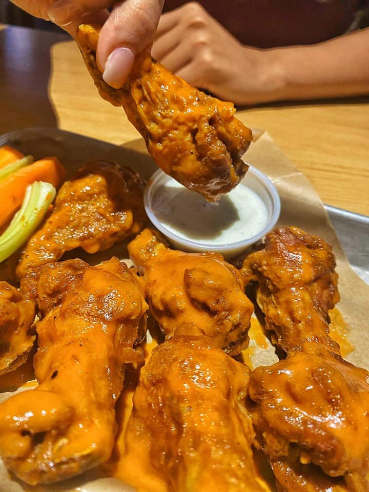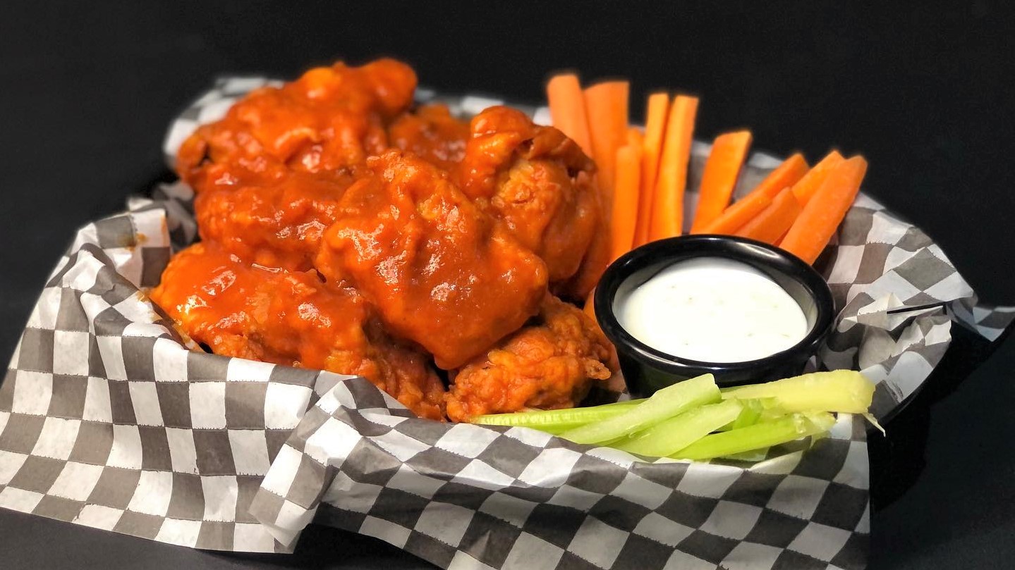 6 alitas o boneless. Incluye ranch y crudites, 1 aderezo a elegir.