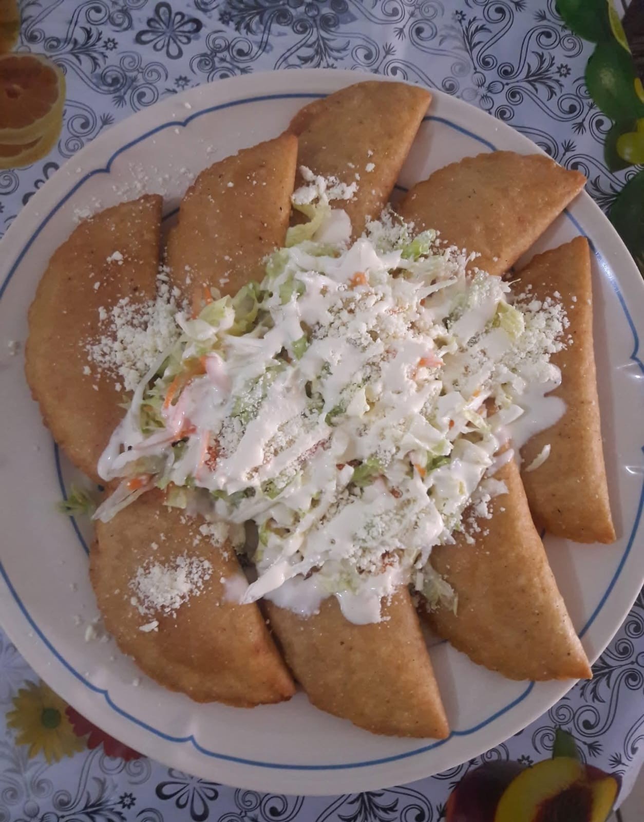 Tortilla frita con el guiso de su preferencia con lechuga y media crema
