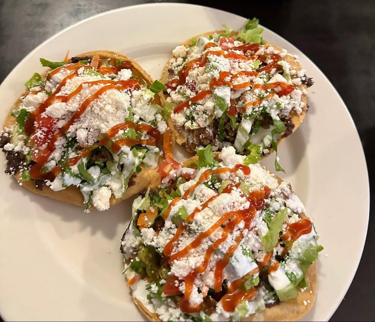 Crujientes tostadas, queso , crema , aguacate , vegetales frescos y salsa, elige tu guiso.