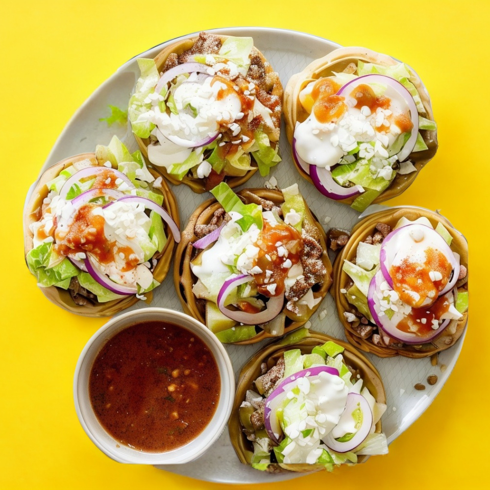 Tortilla en forma de media luna, rellena de carne molida de cerdo, frita en aceite; lleva lechuga, crema y queso.