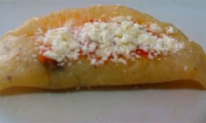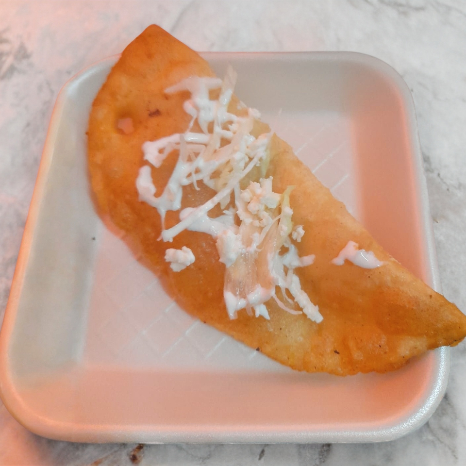 Chile habanero toreado dentro de la empanada y acompañado de lechuga, crema y queso