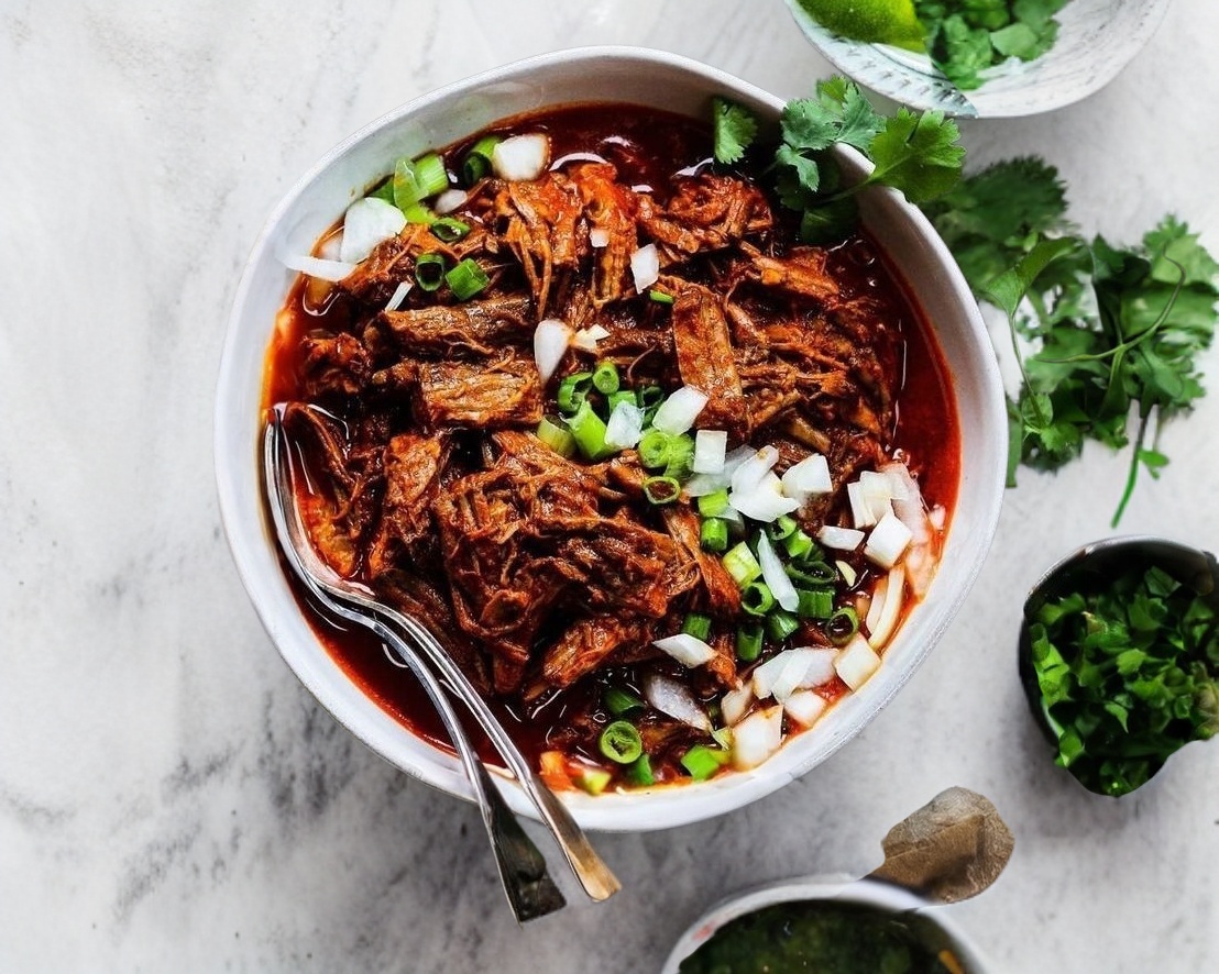 Consome con Pollo Desmenuzado, Cilantro, Cebolla, Aguacate y Tostadas