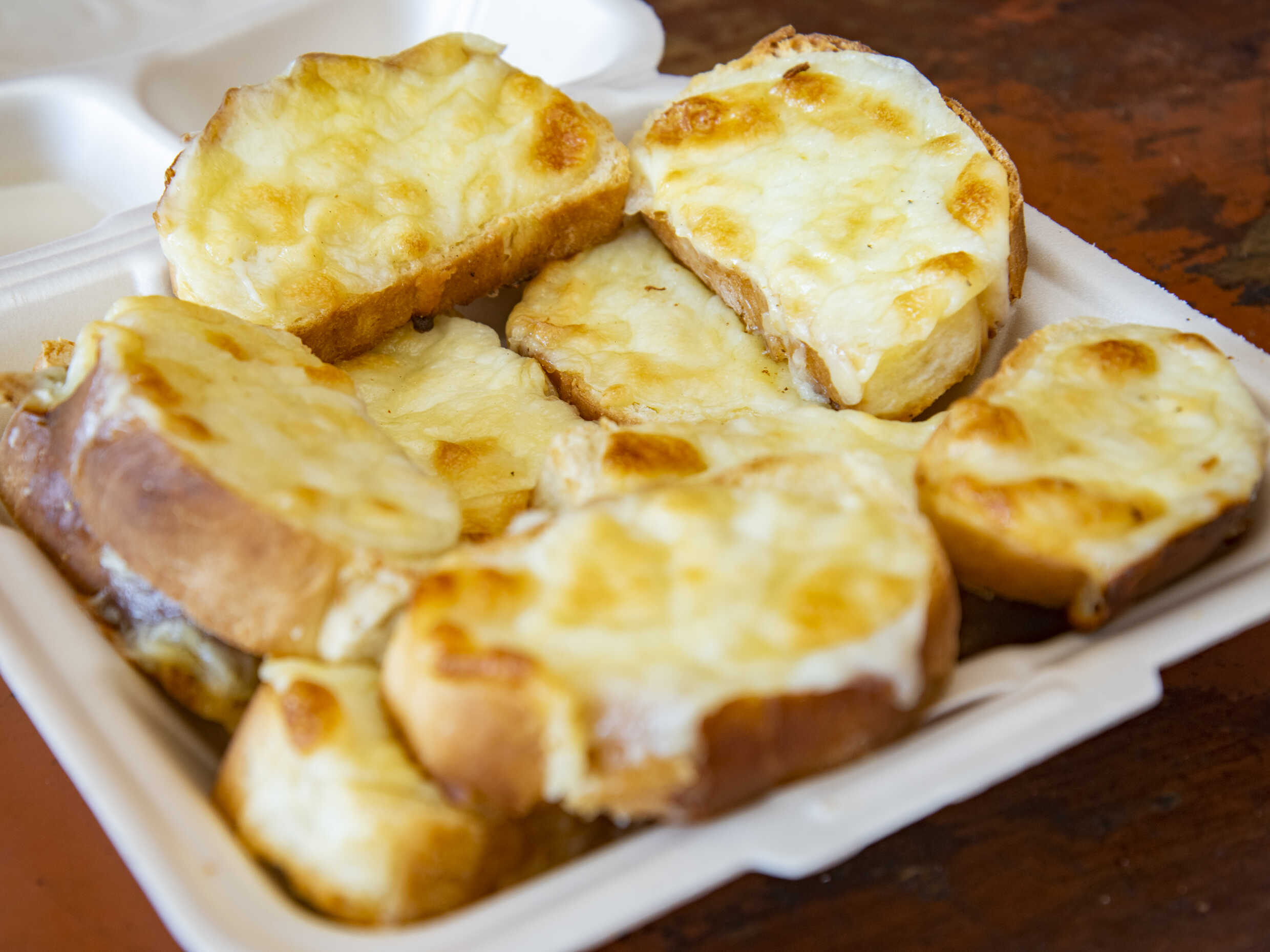 5 ingredientes : tomate , chorizo , carne molida , morron y cebolla , 4 piezas de pan de ajo