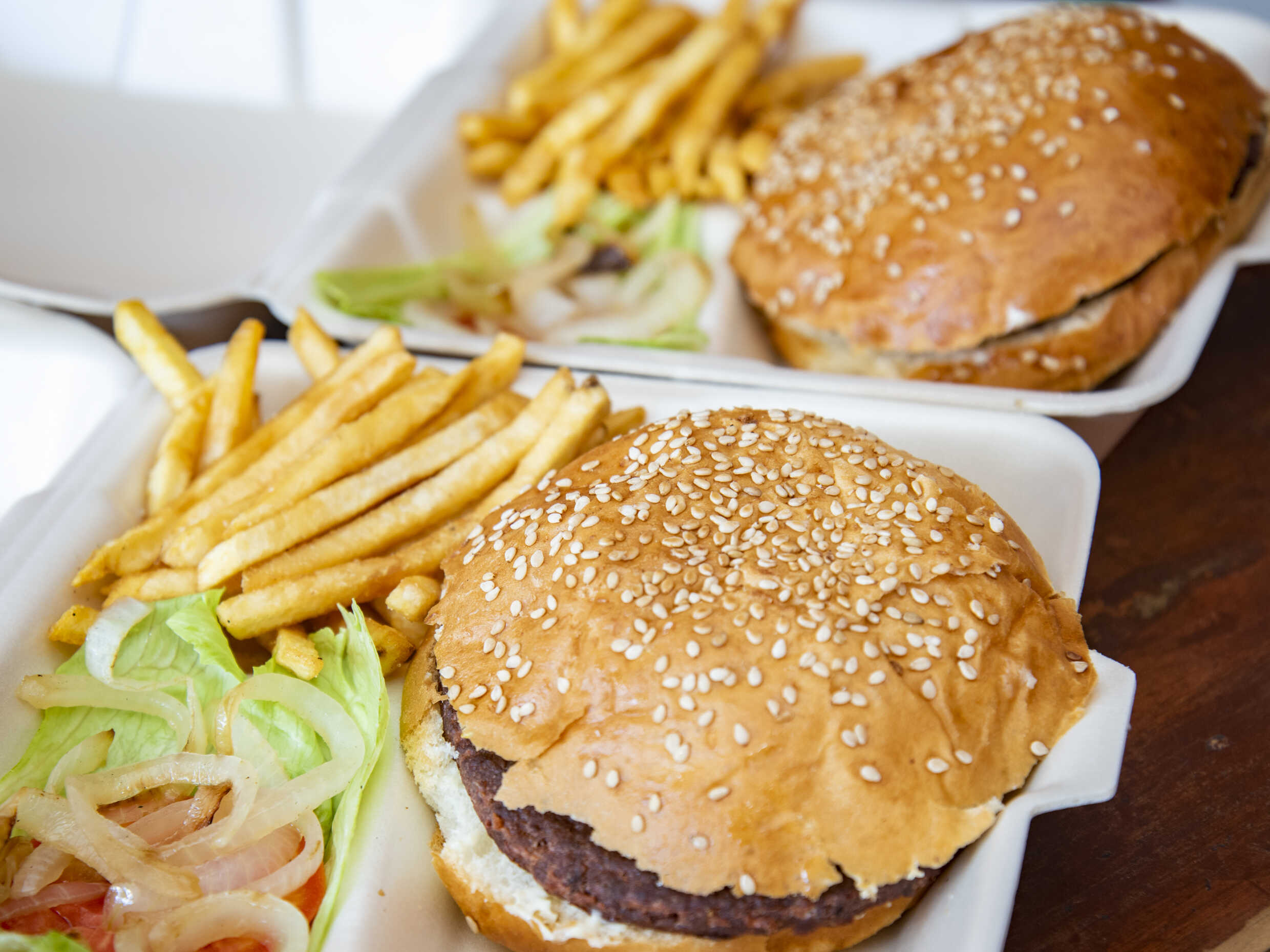 2 hamburguesas con 1 porciones de papa a la francesa