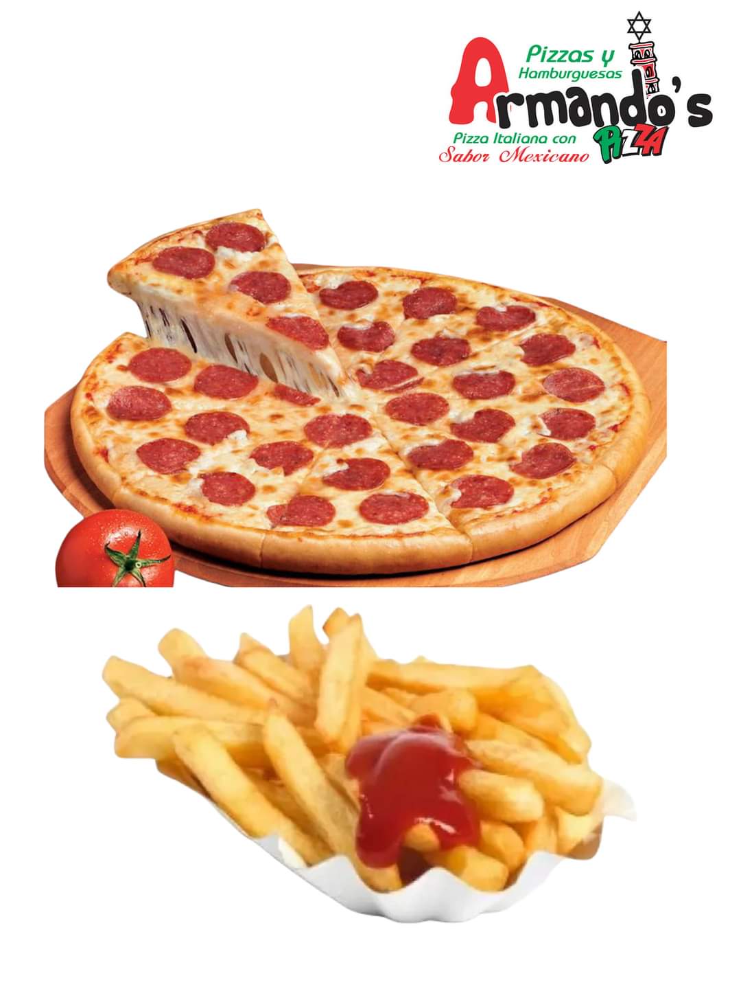 1pizza grande 10 rebanadas + papas a la francesa 350gr aprox