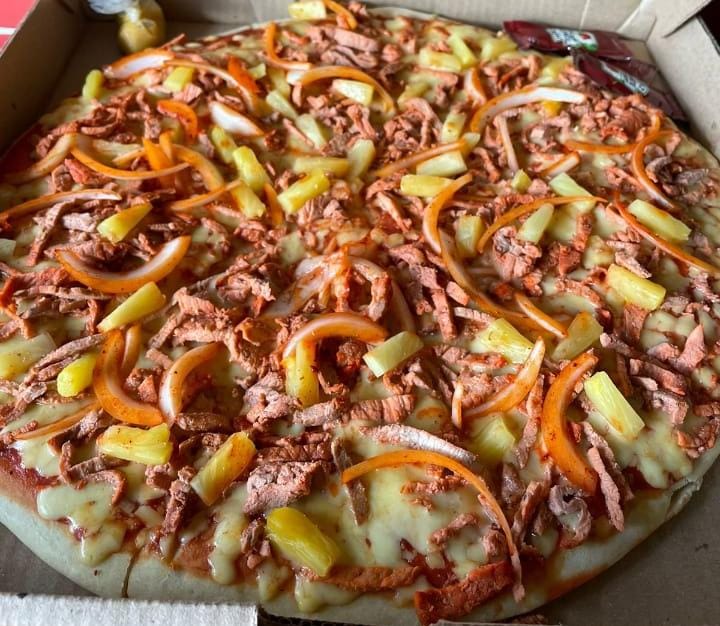 CARNE DE PASTOR, CEBOLLA, PINA, QUESO GOUDA