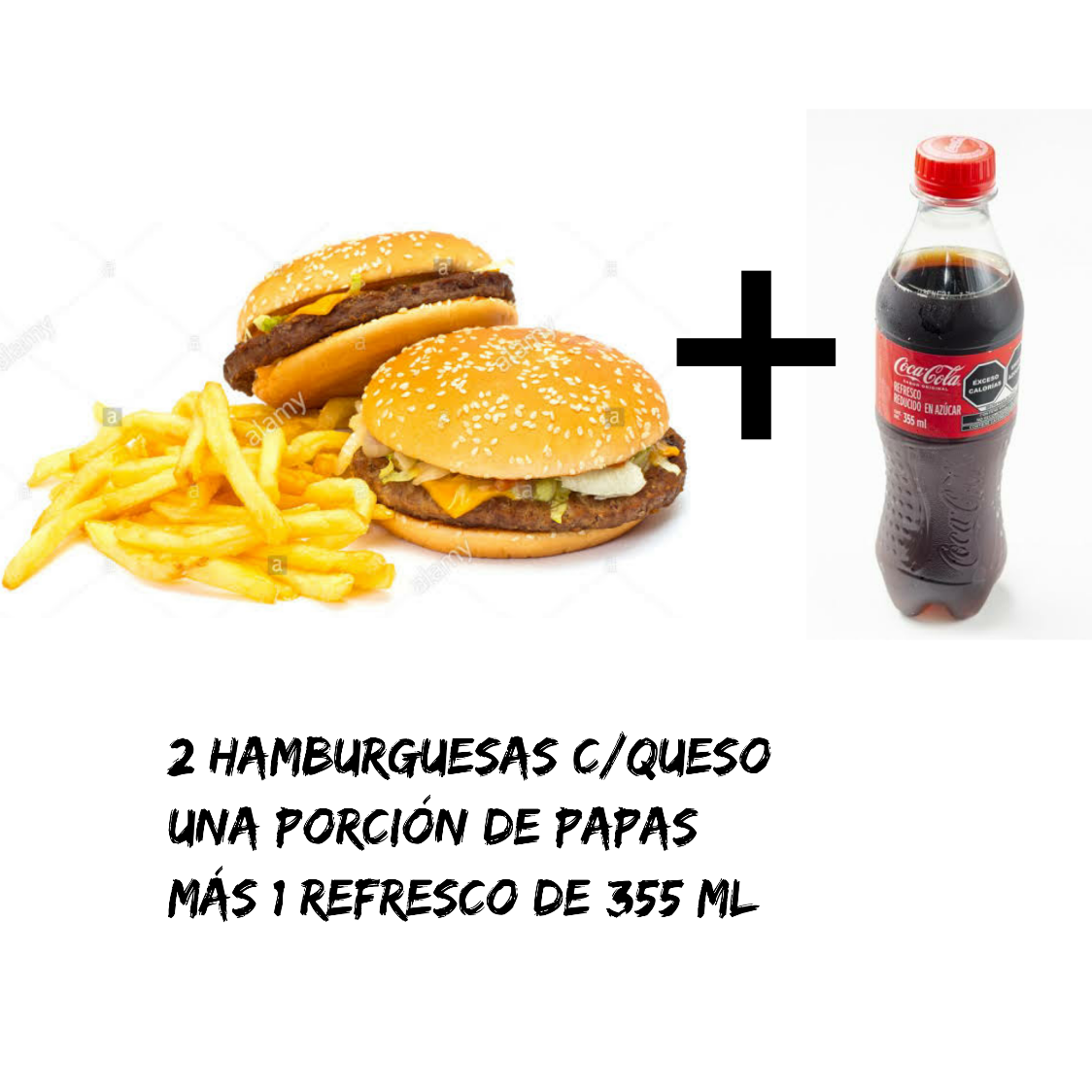2 hamburguesas y 1 refresco Coca-Cola de 355 ml