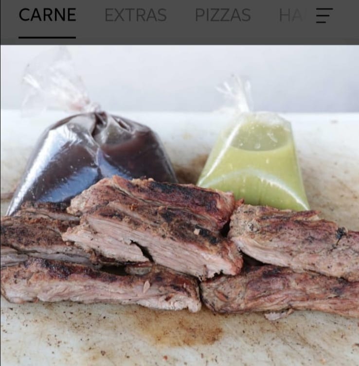 150 grs. de carne asada + 1 pieza de salchicha parrillera + 1 pieza de chistorra + 1 pepsi de 355 mls. acompañado de tortillas, frijoles negros y salsa verde.
