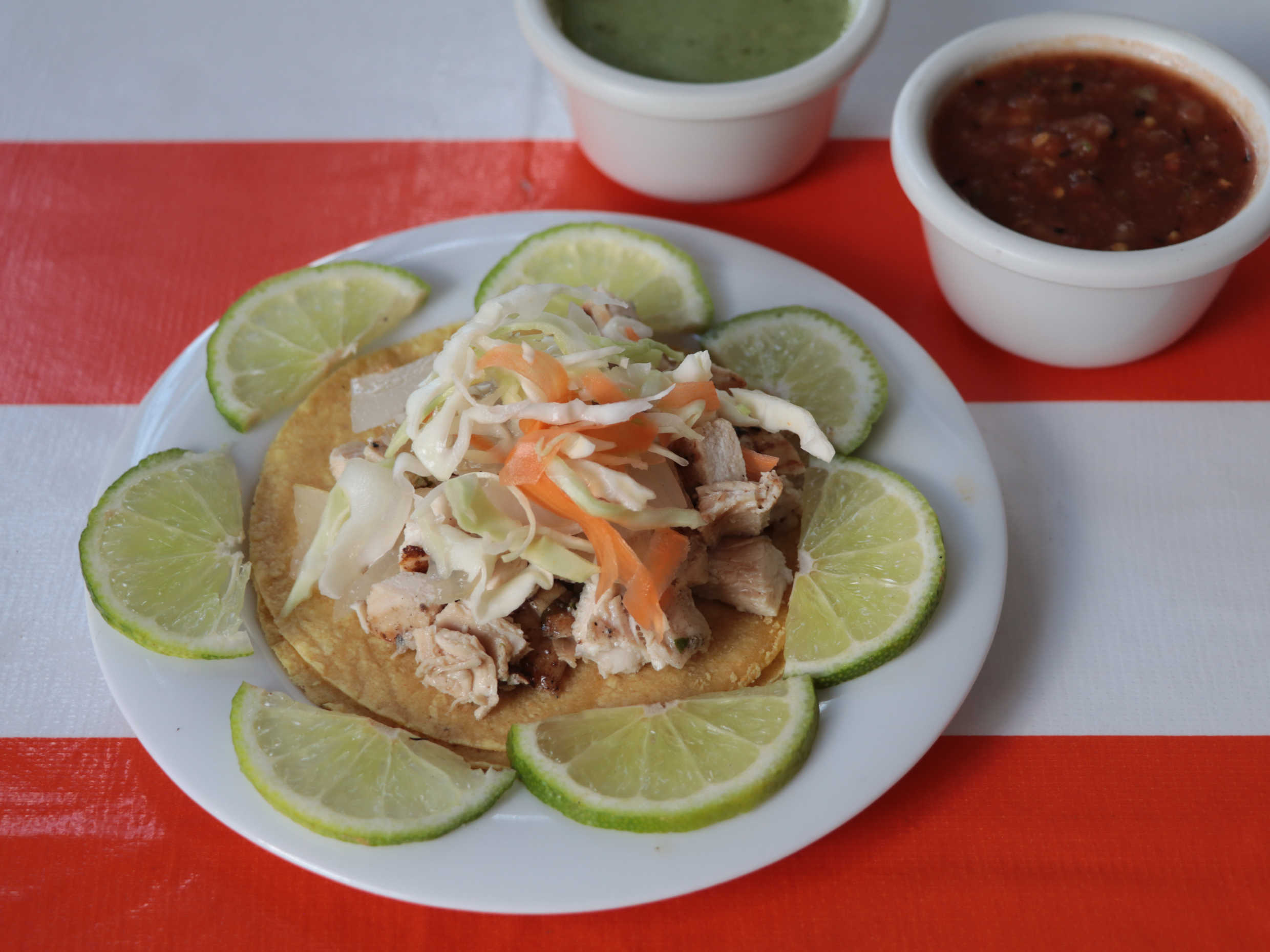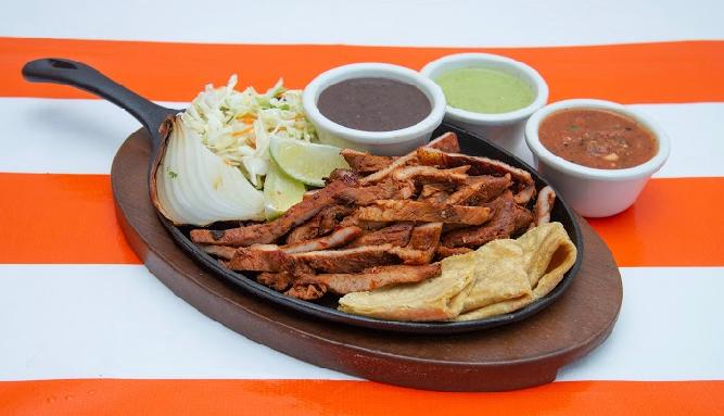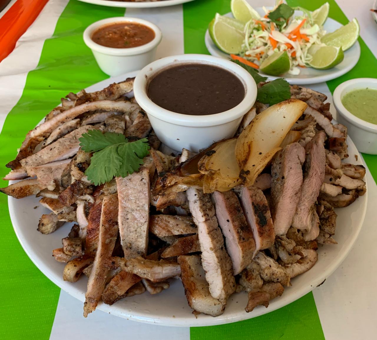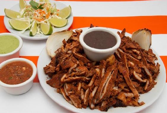 Cualquier orden incluye chiltomate, cebolla asada, limones, ensalada de repollo y frijoles.