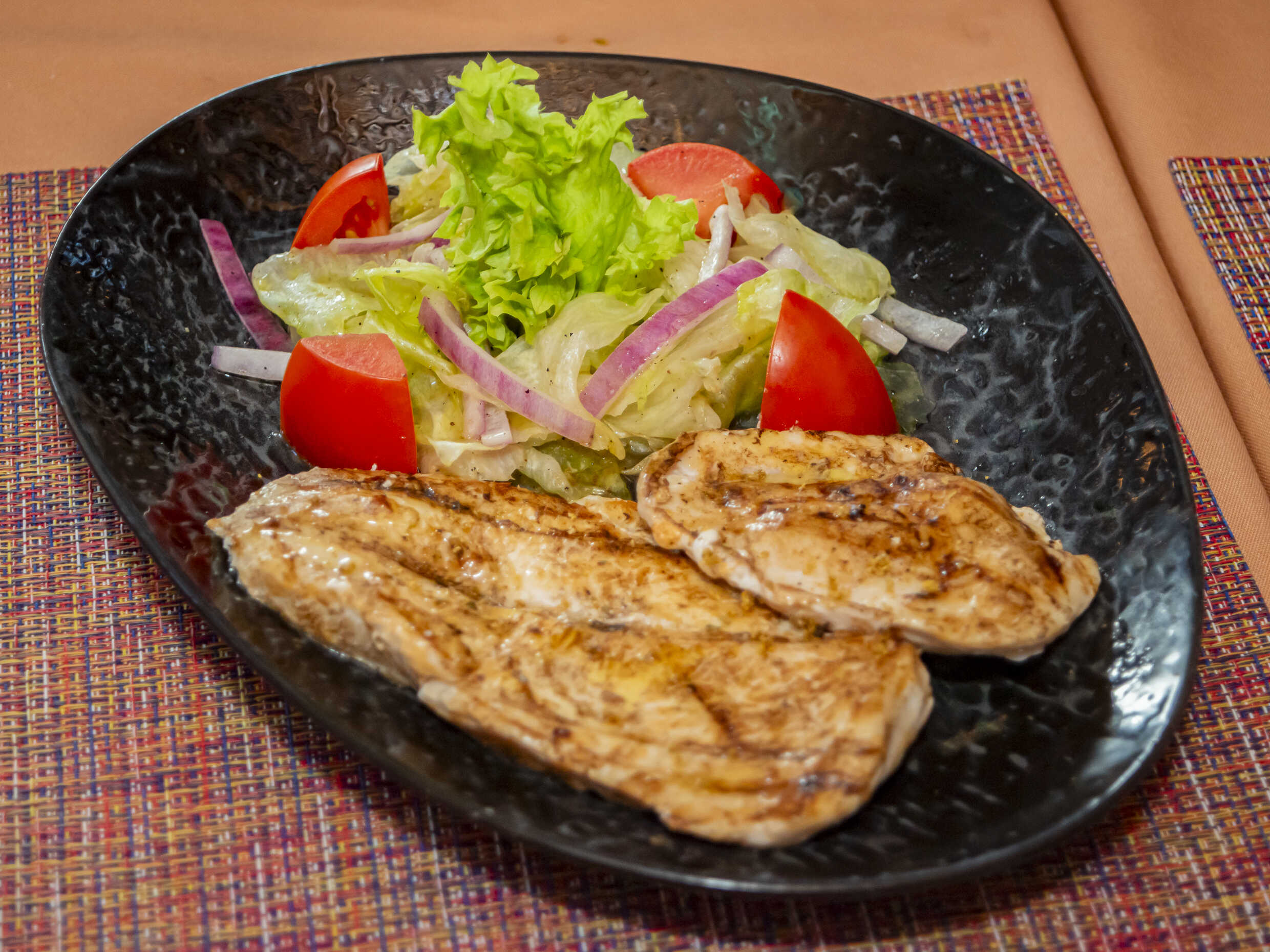 Un corte muy suave y sin grasa choice, todos los cortes son acompañados de una guarnición de ensalada mixta y chile toreado, lechuga romana, cebolla y tomate con una vinagreta natural preparada al momento.