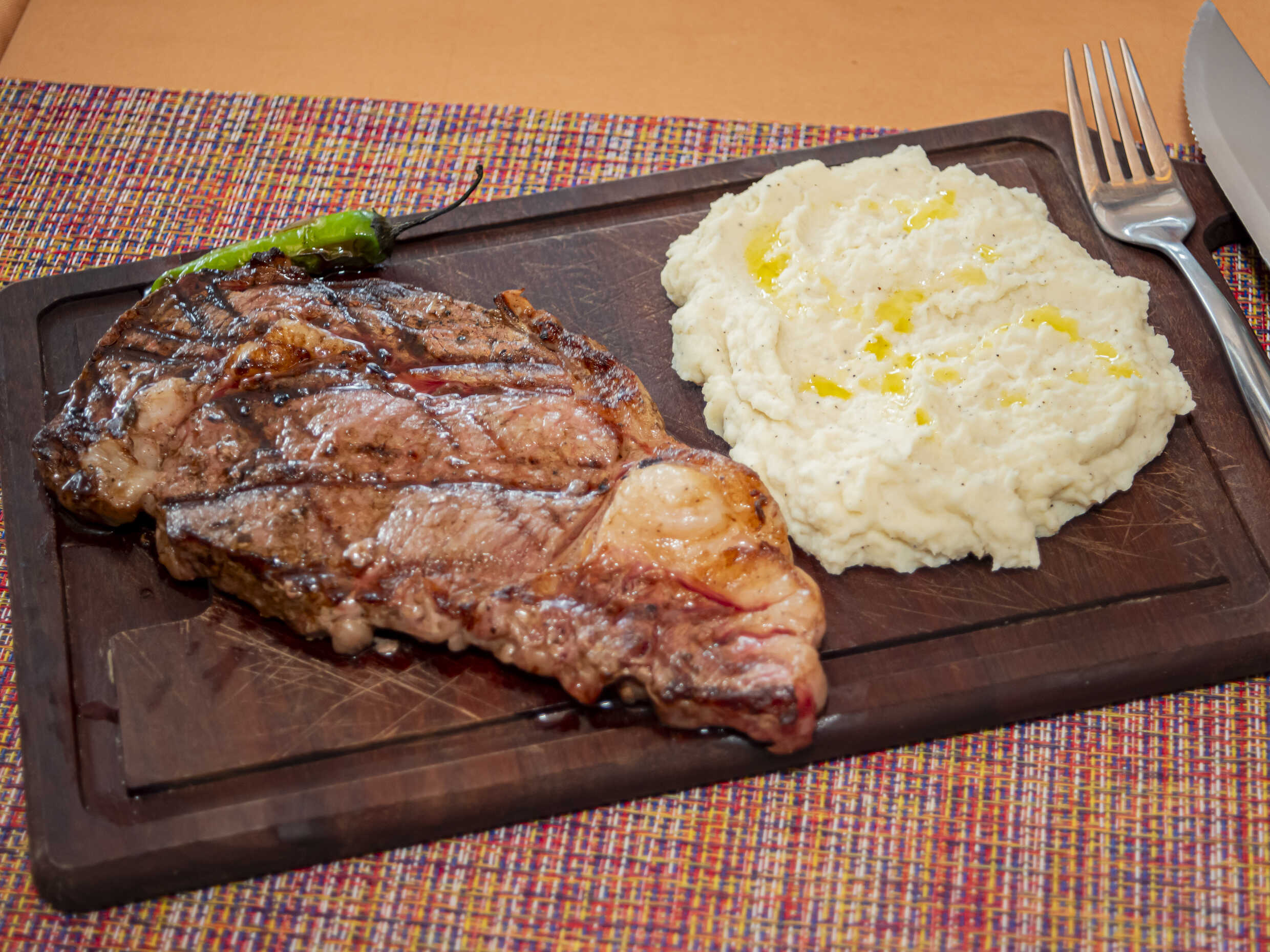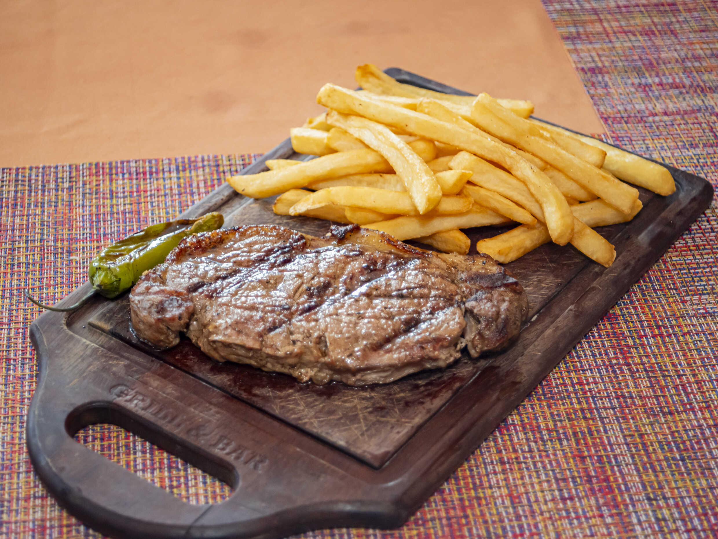 Delicioso corte brasileño, todos los cortes son acompañados de una guarnición de ensalada mixta y chile toreado, lechuga romana, cebolla y tomate con una vinagreta natural preparada al momento.