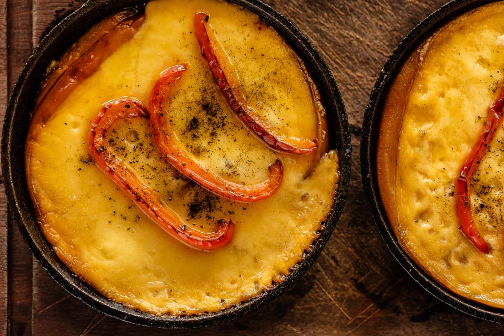 Dos rebanadas de queso provolone ahumado y asado a la parrilla con mezcla de pimientos, orégano y un toque de aceite de olivo.