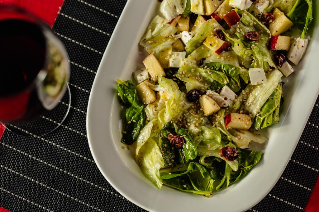 Lechuga orejona, manzana, pera, arándanos, espinaca, queso mozzarella y un toque de ajonjolí con aderezo de miel mostaza.