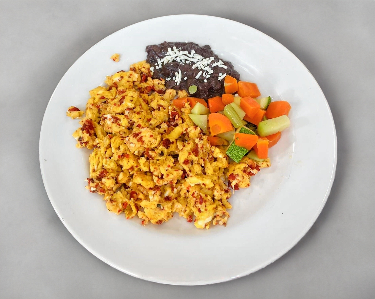Huevos a la mexicana con jitomate cebolla 2 guarniciones a eleccion