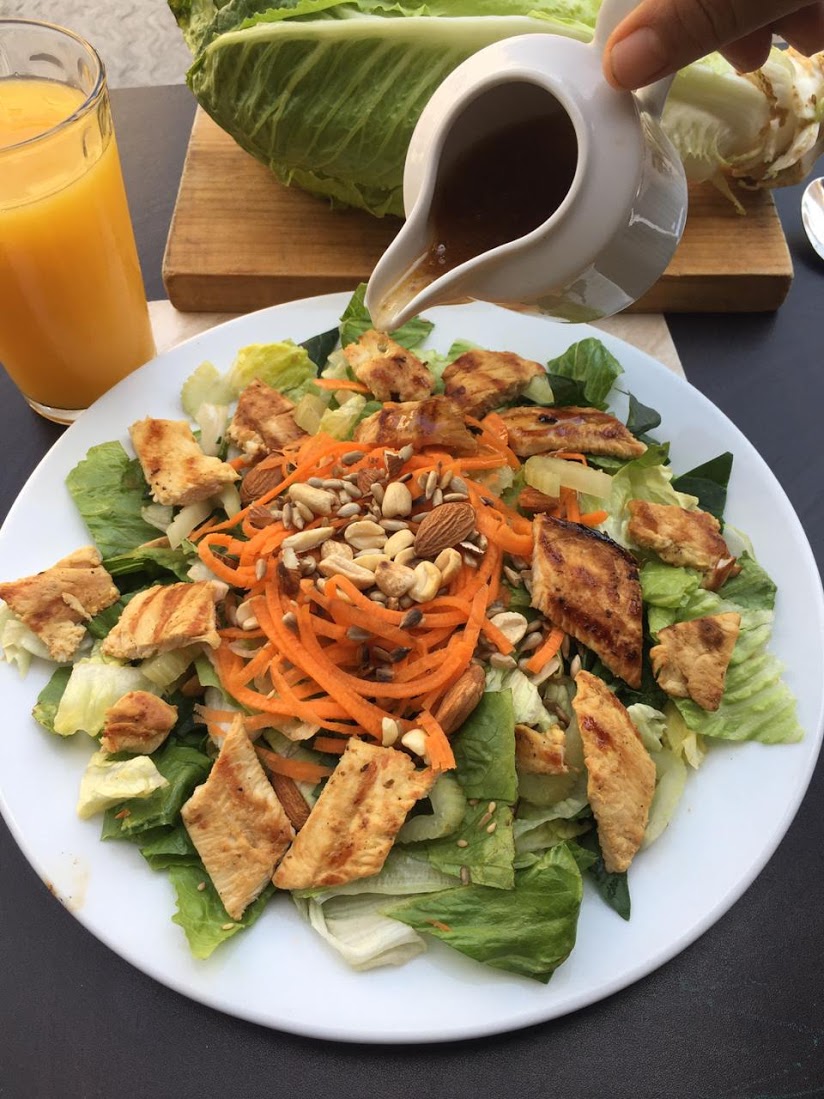Excelente combinación del huerto. Con frescos vegetales, zanahoria, lechuga, apio, betabel granos y semillas que detonan un delicioso sabor con un toque de aderezo de mostaza y miel con trocitos de pechuga asada fresca. ¡Tienes que probarla!