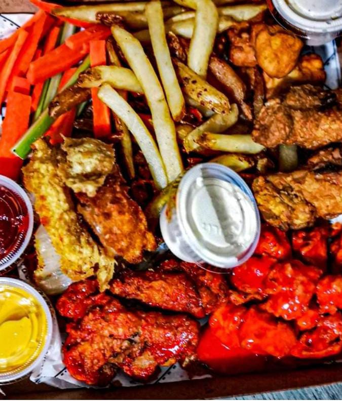 Medio kilo de alitas,ranch,papas fritas y verduras.