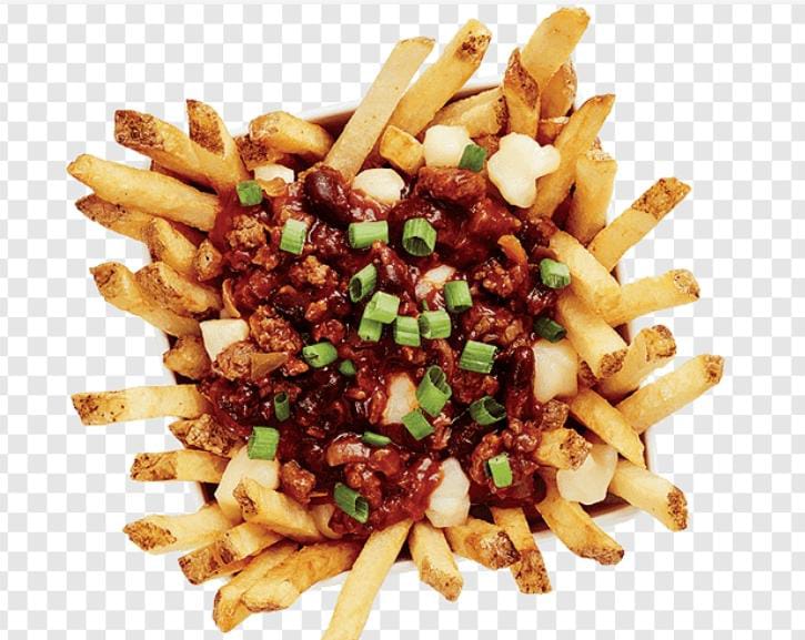 Papas fritas con queso cheddar y carne tipo arrachera ,servido en un contenedor 7x7