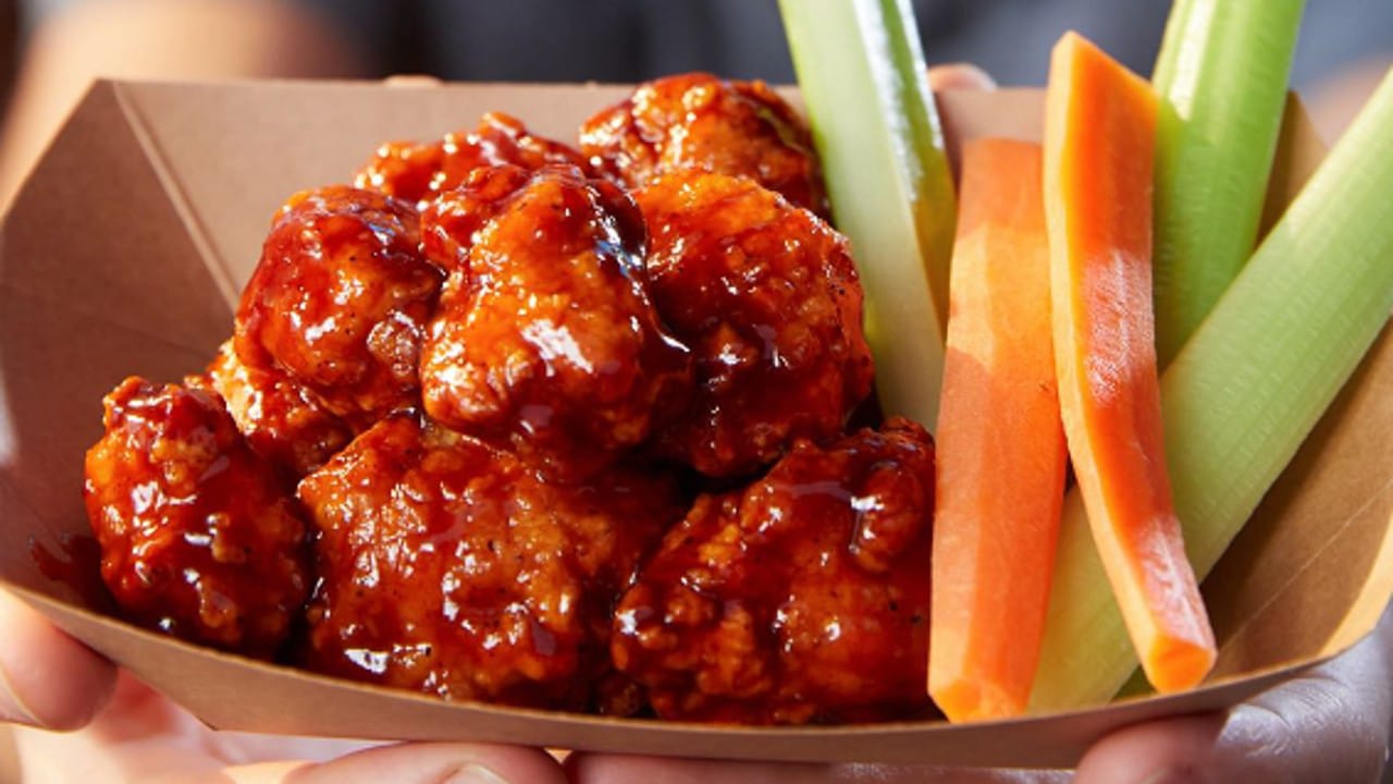 Hot-dog clásico,boneless Buffalo, papas fritas y ranch.