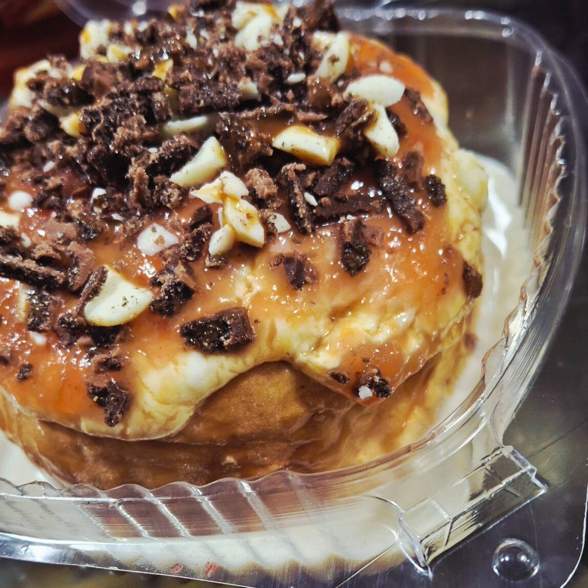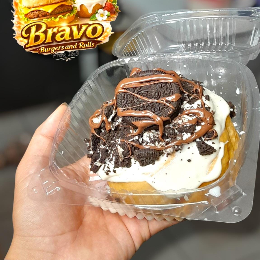Rol de canela con Crema de galleta oreo, trozos de galleta óreo y nutella.