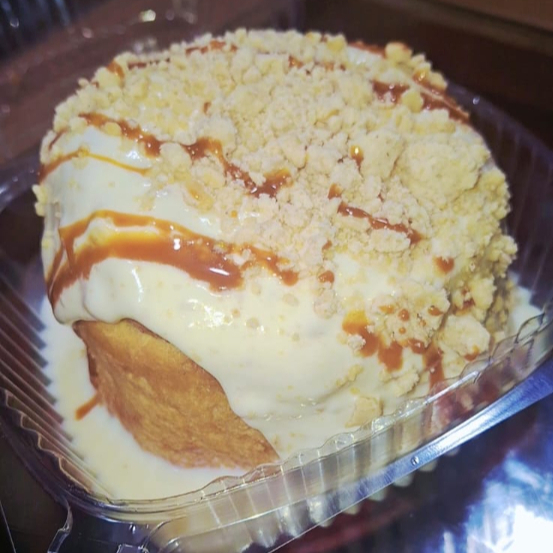 Delicioso rol de canela con crema de Mazapan, Mazapan, & cajeta.