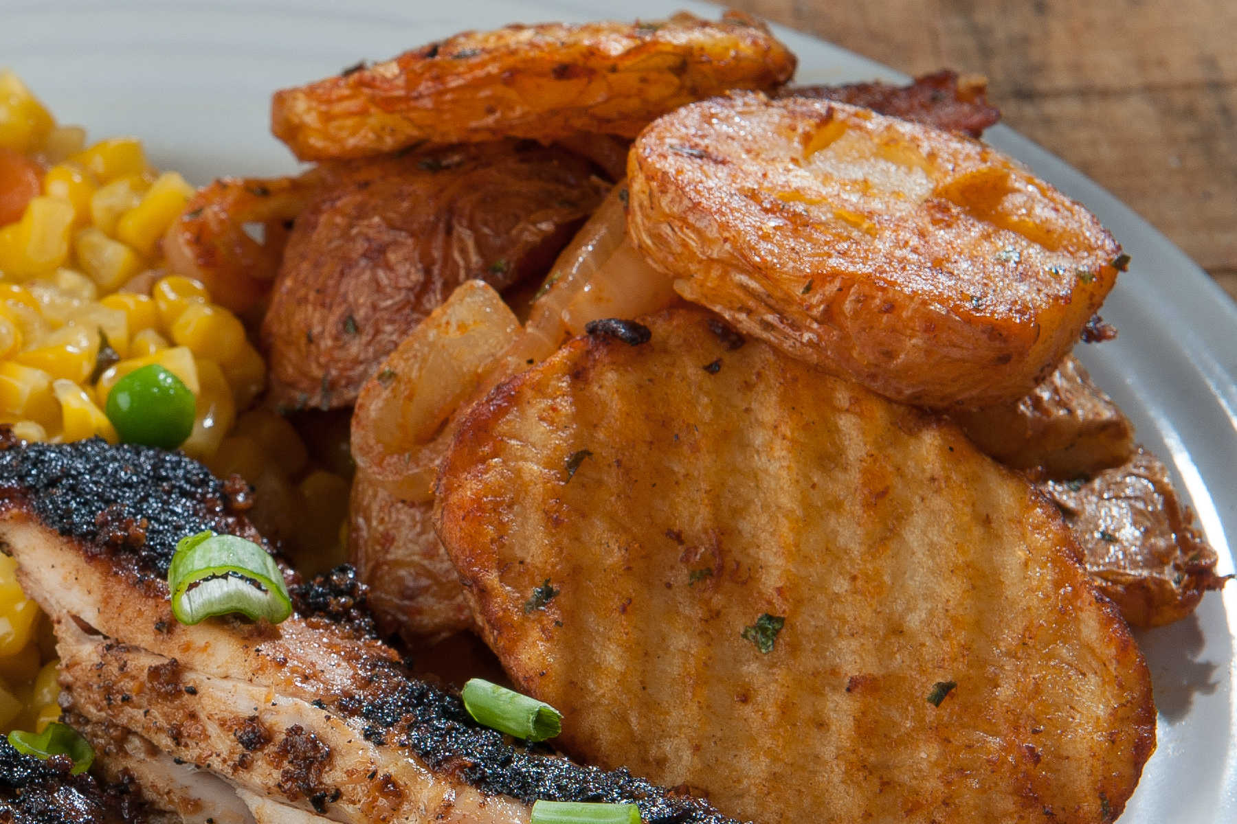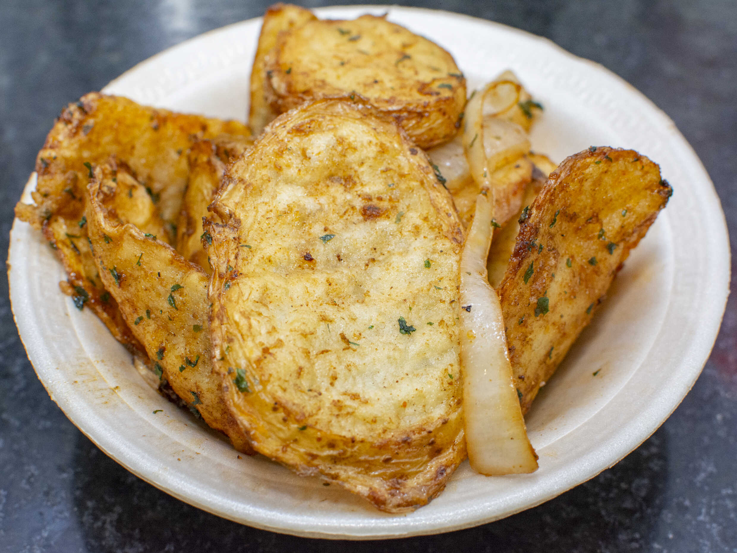 Rodajas De Papa Sofritas Con Cebolla Y Nuestra Inigualable Mezcla De Especias.