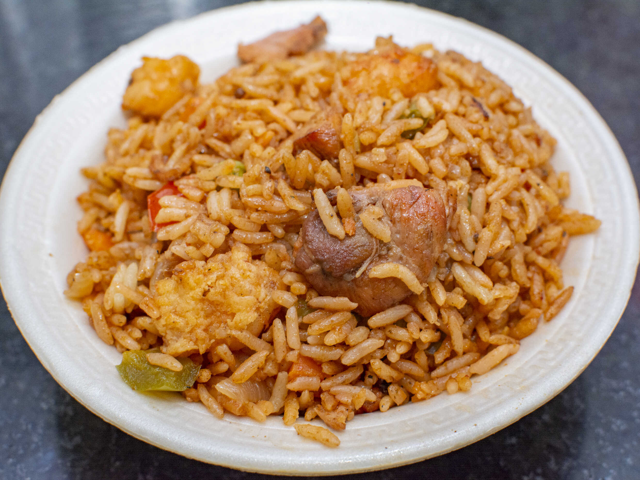 Insignia De La Comida Cajún, Arróz Con Pollo, Salchicha, Camarón Y Vegetales, Sazonados Con Una Mezcla De Especias Ligeramente Picantes. Un Ataque De Sabor A Los Sentidos.