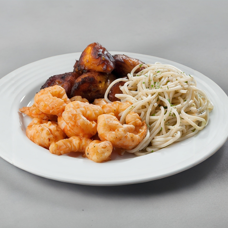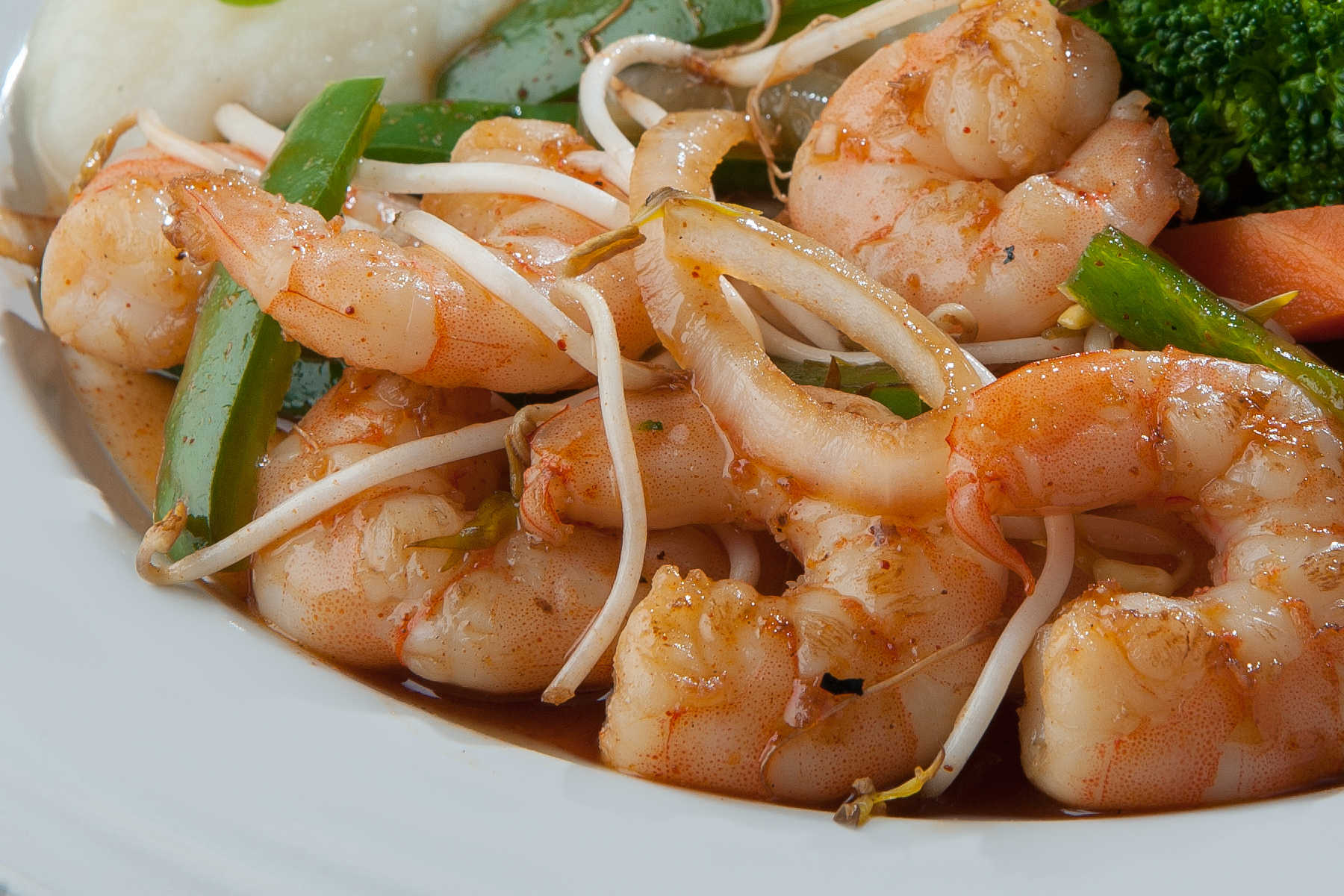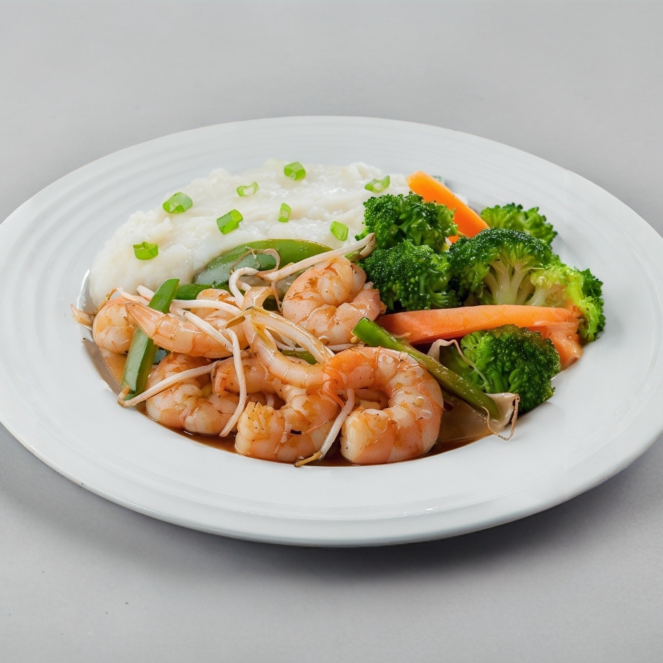 Camarones Del Golfo Asados Con Cebolla Y Jalapeño, Y Bañados En Una Salsa Dulce Con Acento Asiático.