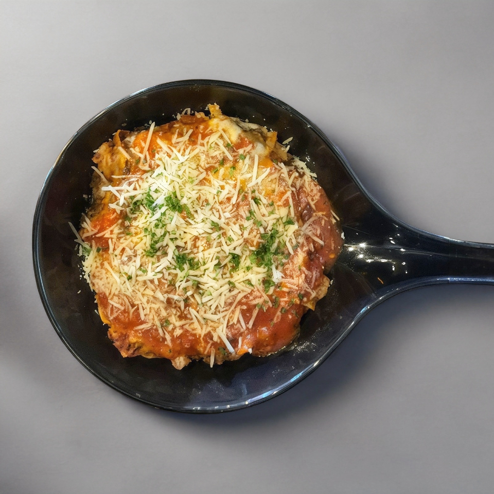 Salsa boloñesa gratinada con queso mozzarella y un toque de grana padano.