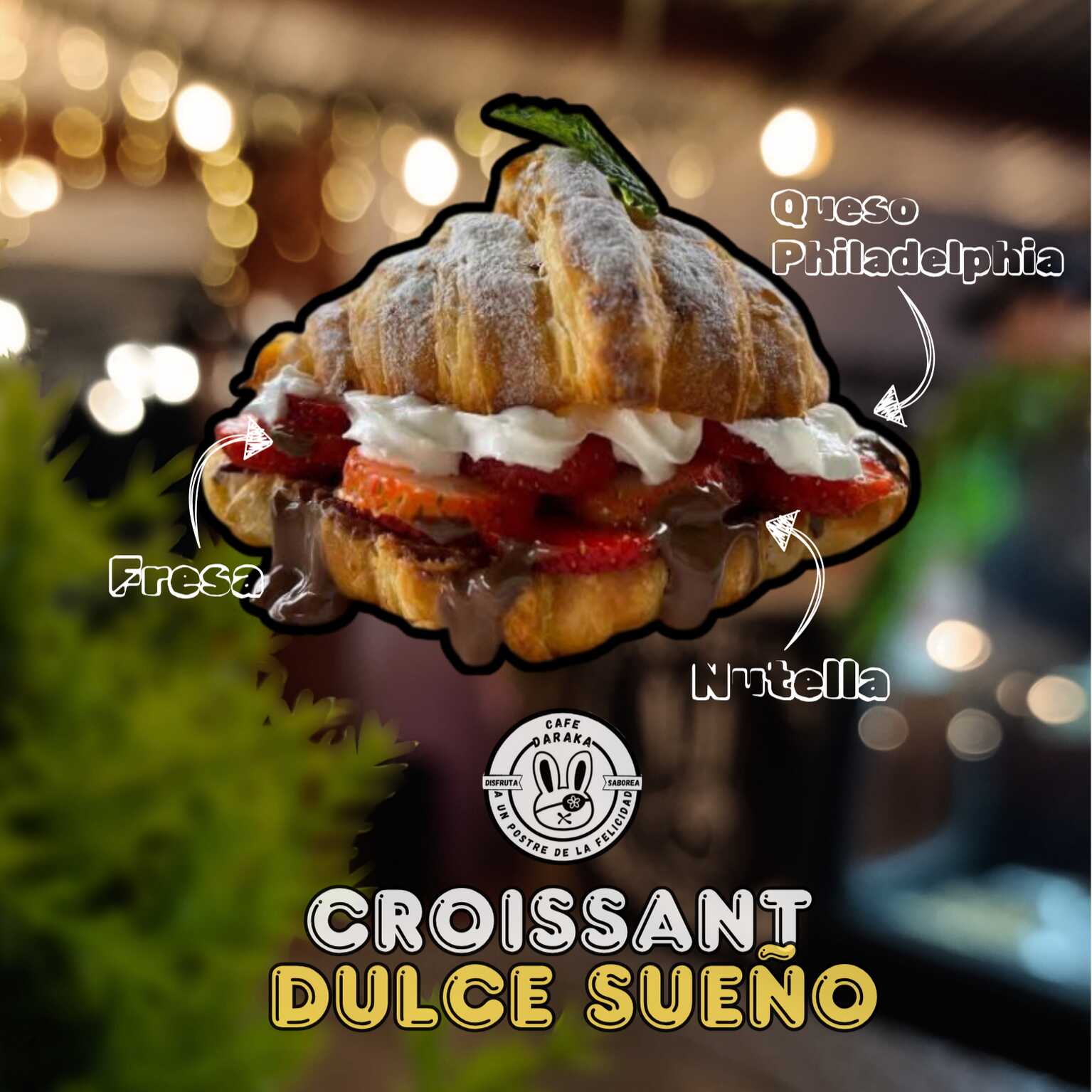 delicioso croissant con queso philadelphia fresa natual y crema de avellana