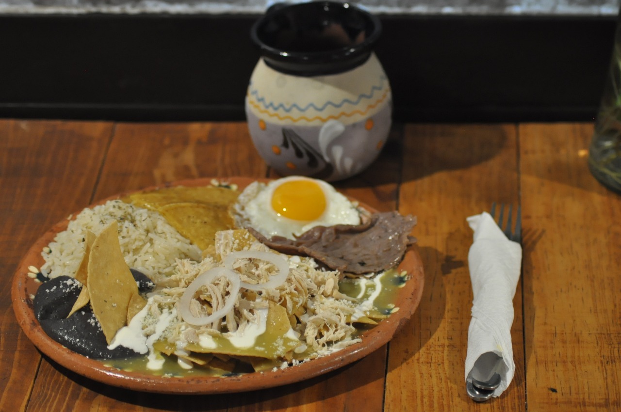 1/2 orden de huevos al gusto, 1/2 orden de enchiladas o chilaquiles, arroz, frijol, quesadilla de maiz y media orden de bistec de res.