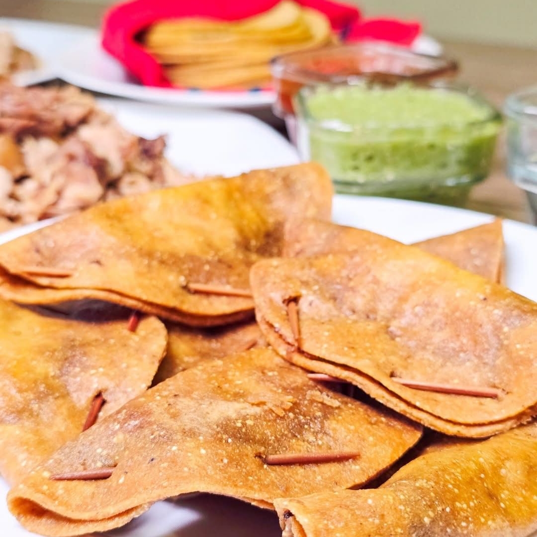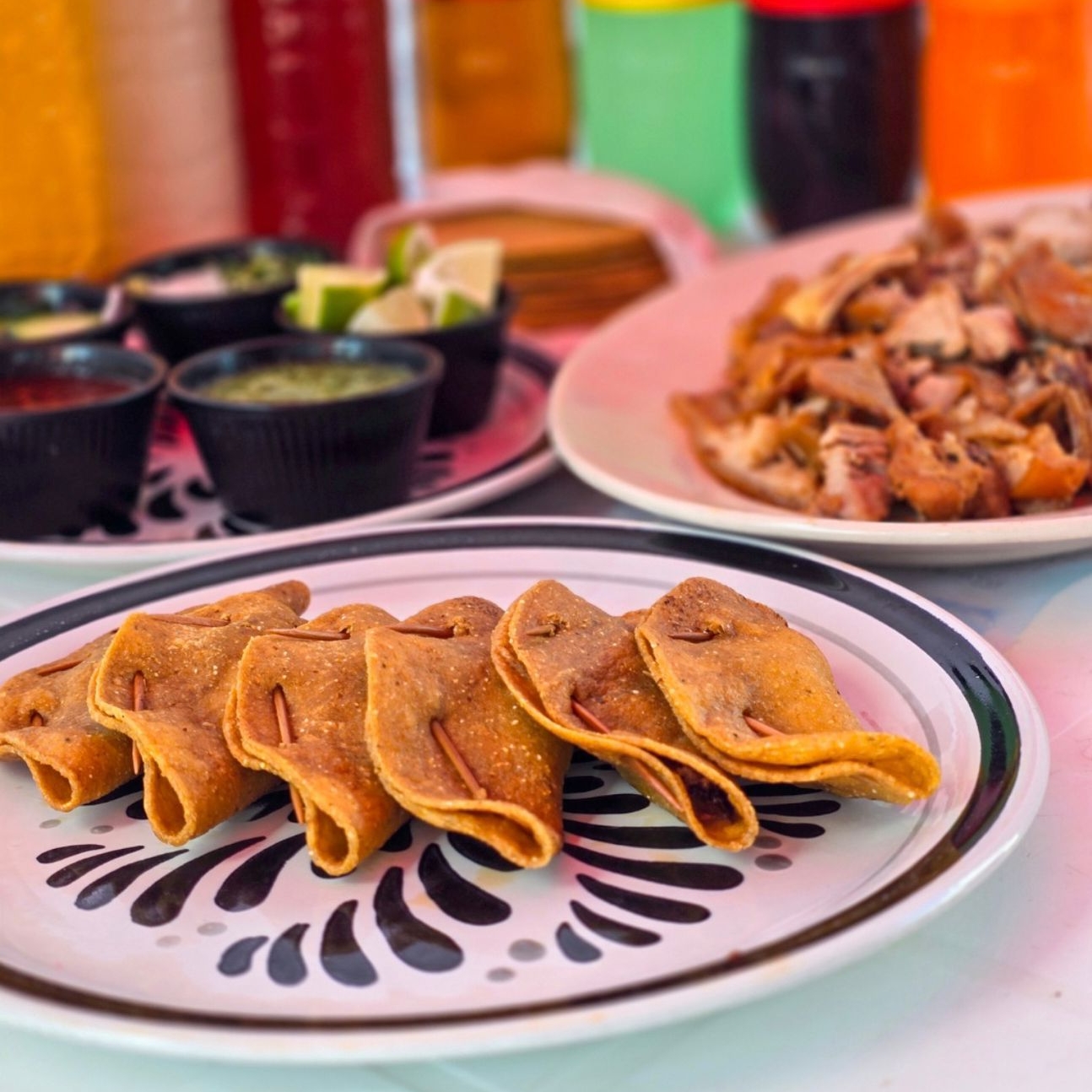 1 Kilo de carnitas surtido, 6 sesadillas de sesos o tacos dorados, 400 gramos de tortillas, 1 refresco de sabor o Coca-Cola de 1.35lt, cilantro, cebolla, limones, salsa verde, salsa roja y ensalada de pepinos con chile habanero.