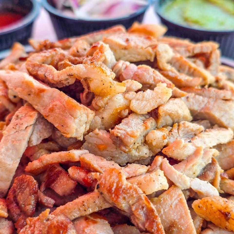 350 GR de Carnitas Surtida + Tortillas + Agua del día 1Lt. incluye cilantro, cebolla, limones, salsa verde, salsa roja y ensalada de pepinos con habaneros