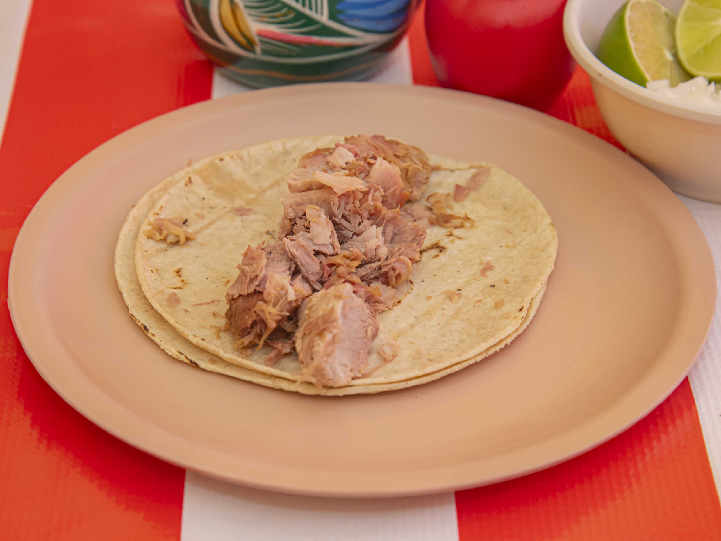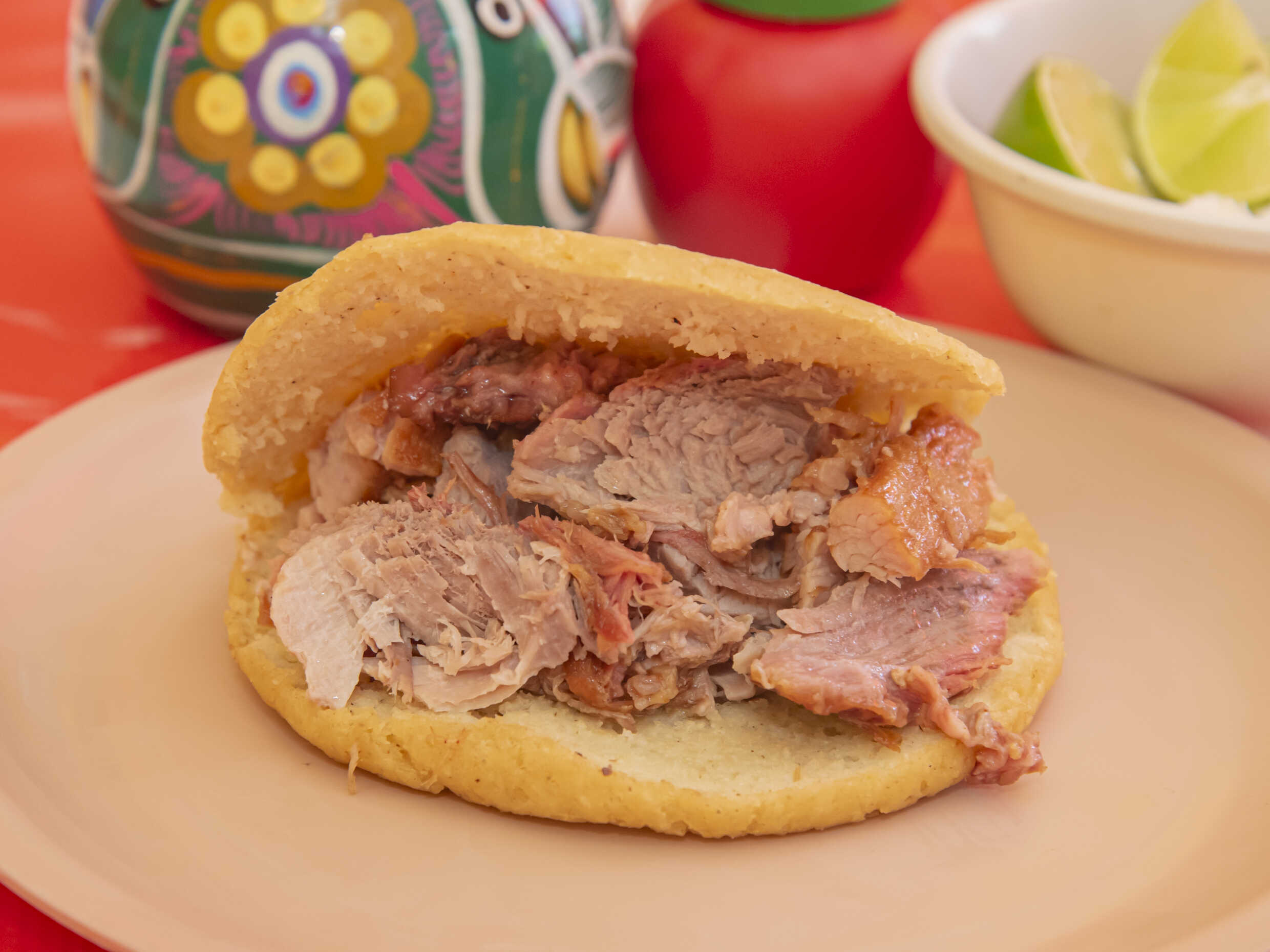 Gordita rellena de carnitas Acompañado de salsas limón cebolla y cilantro