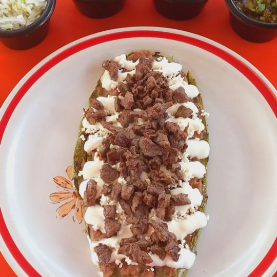 Gordita de arrachera, sirloin, chuleta ó pollo.