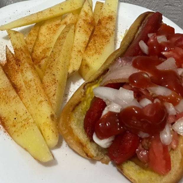 Hot Dog pal antojo. Tamaño normal por si no traes tanta hambre, hecho en el momento.