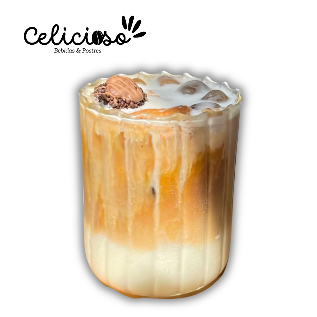 Amante del café, bebida fría base caramelo, shot de expreso, leche y hielos.