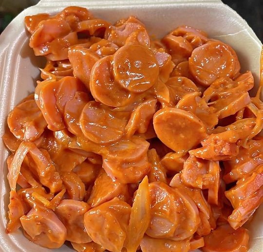 Porcion de salchichas enchipotladas.
