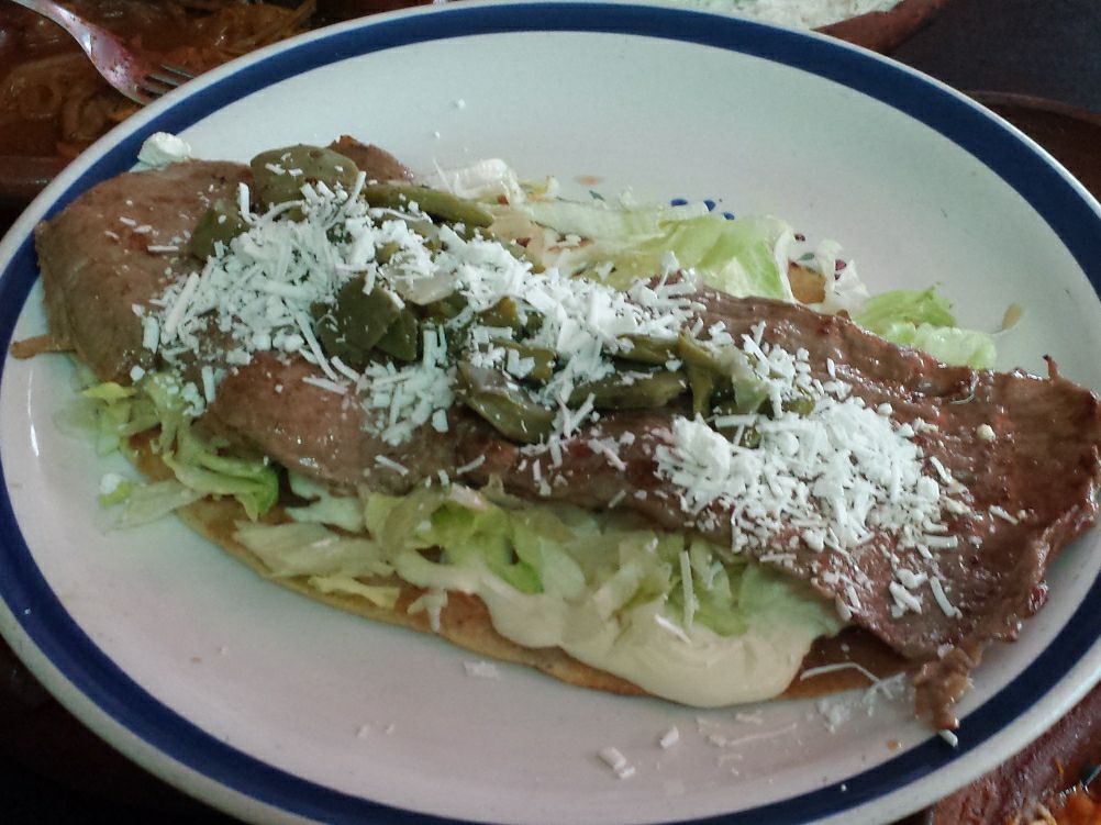 Tortilla de maíz hecha a mano 25 centímetros, con frijol, lechuga, queso fresco y guisado a escoger.