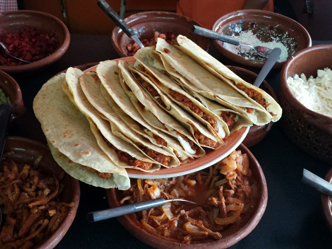 Tortilla de maíz hecha a mano 25 centímetros, con queso Oaxaca y guisado a escoger.