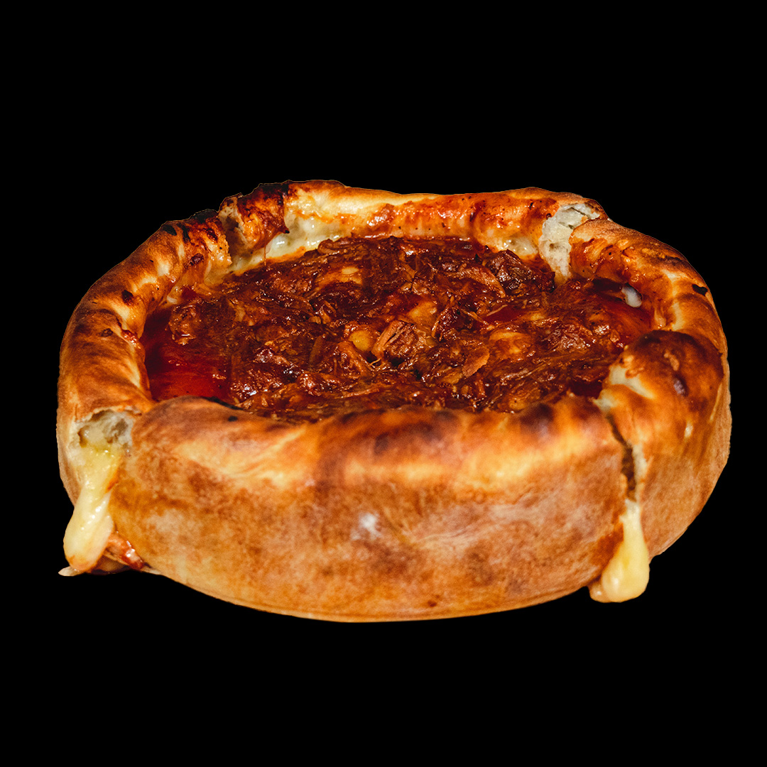 Pizza Original (Chicago Deep Dish) pulled pork.