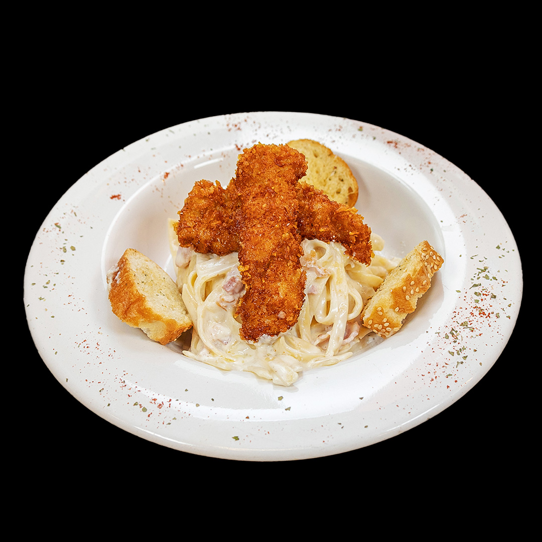 Alfredo original con pechuga kentucky.