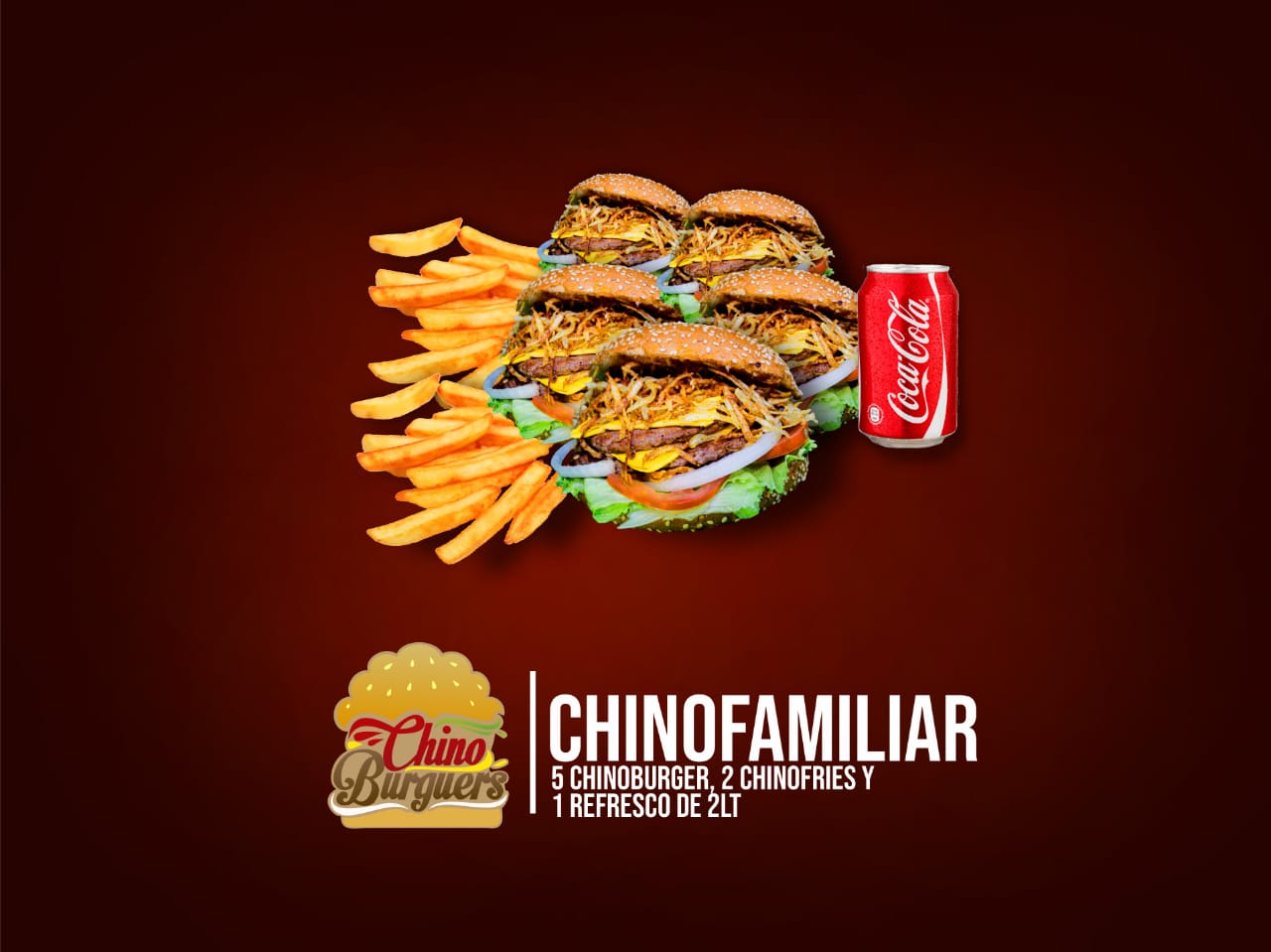 5 Chinoburgers, 2 chinofries y refresco de 2 L.
