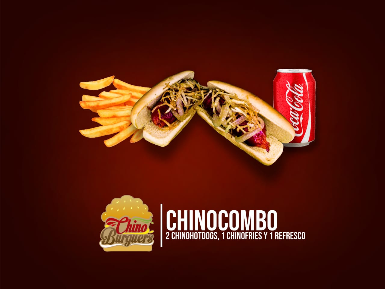2 Chino hot dogs, 1 chinofries y 1 refresco de 355ml.
