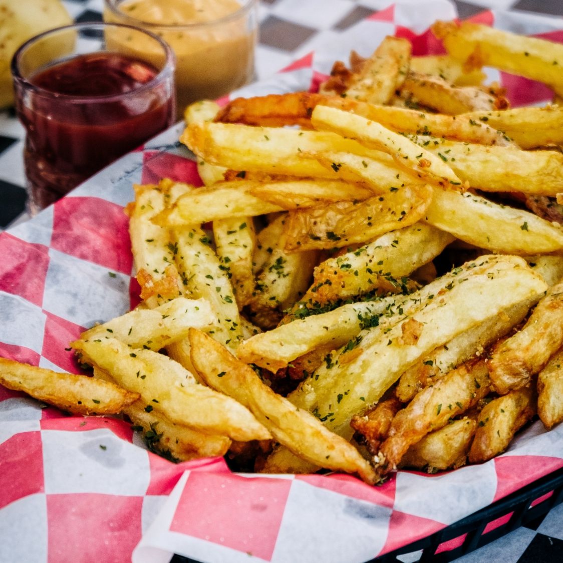 500 g Pesado en crudo de papas fritas naturales con queso y tocino, condimentadas.