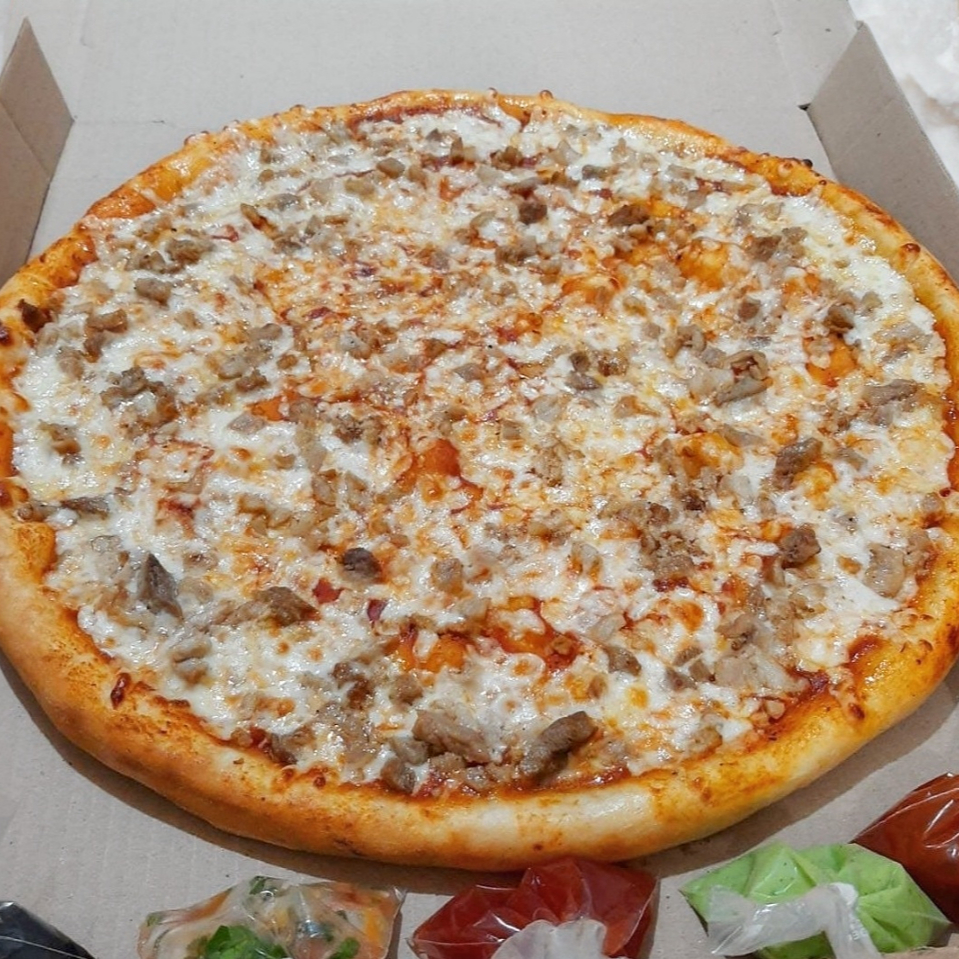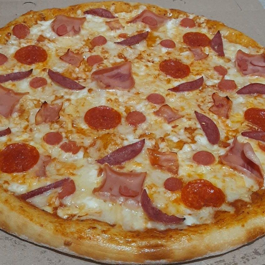 PIZZA DE 3 CARNES FAMILIAR 12 REBANADAS