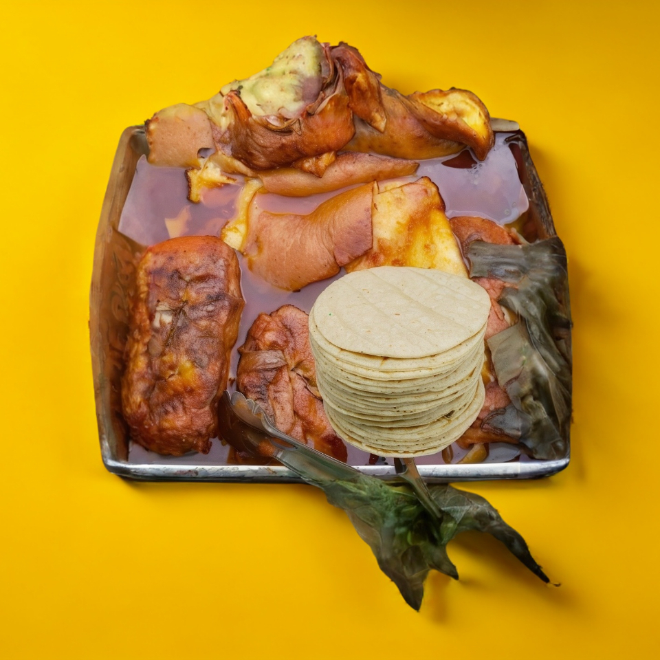 1 kg De cochinita, con cebolla morada curtida y salsa de chiles habaneros toreados.