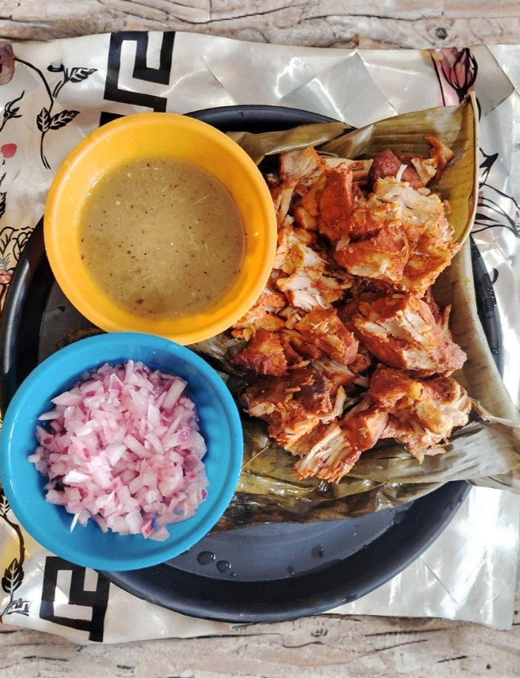 1 Kg de cochinita Maciza cebolla morada, salsa habanero